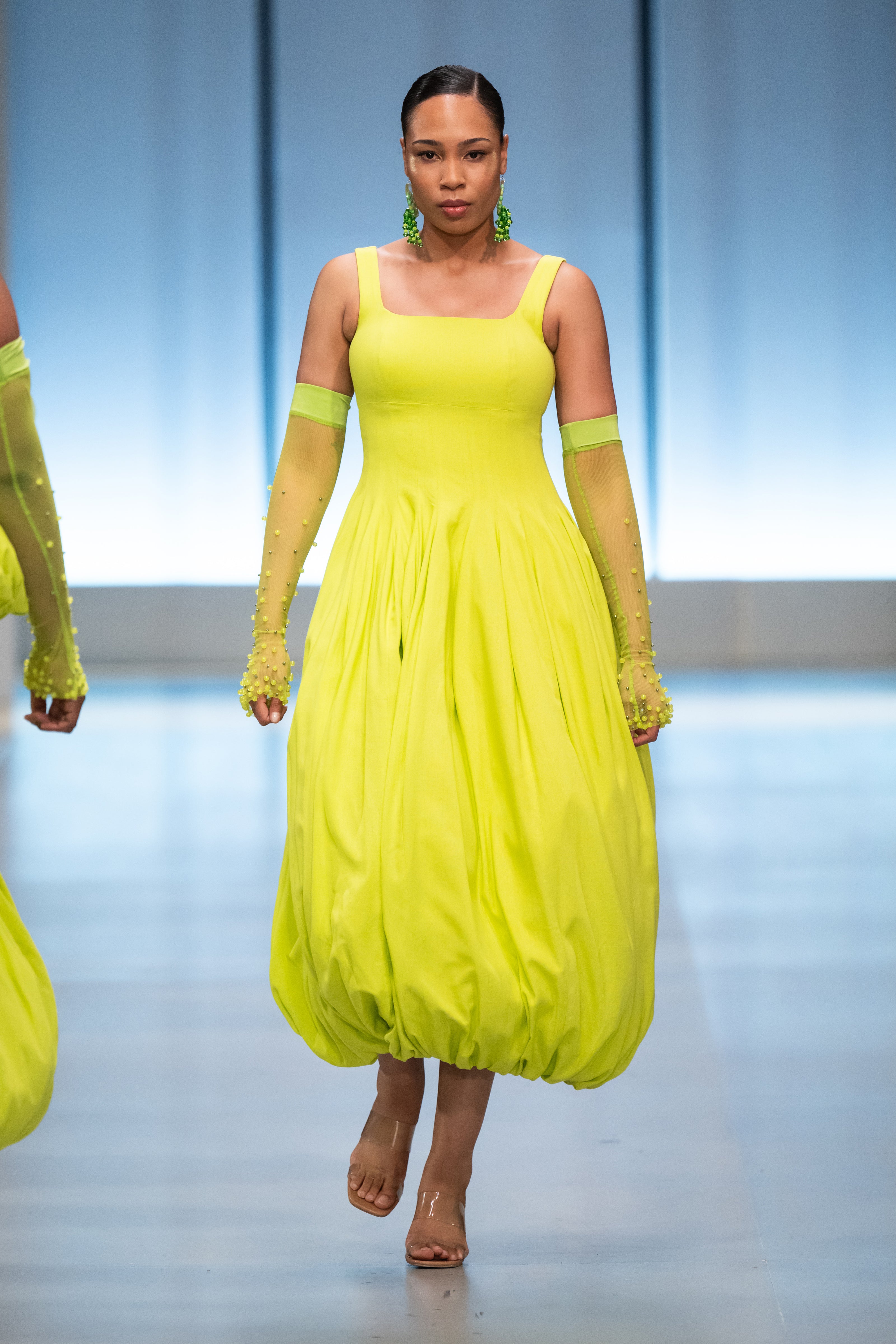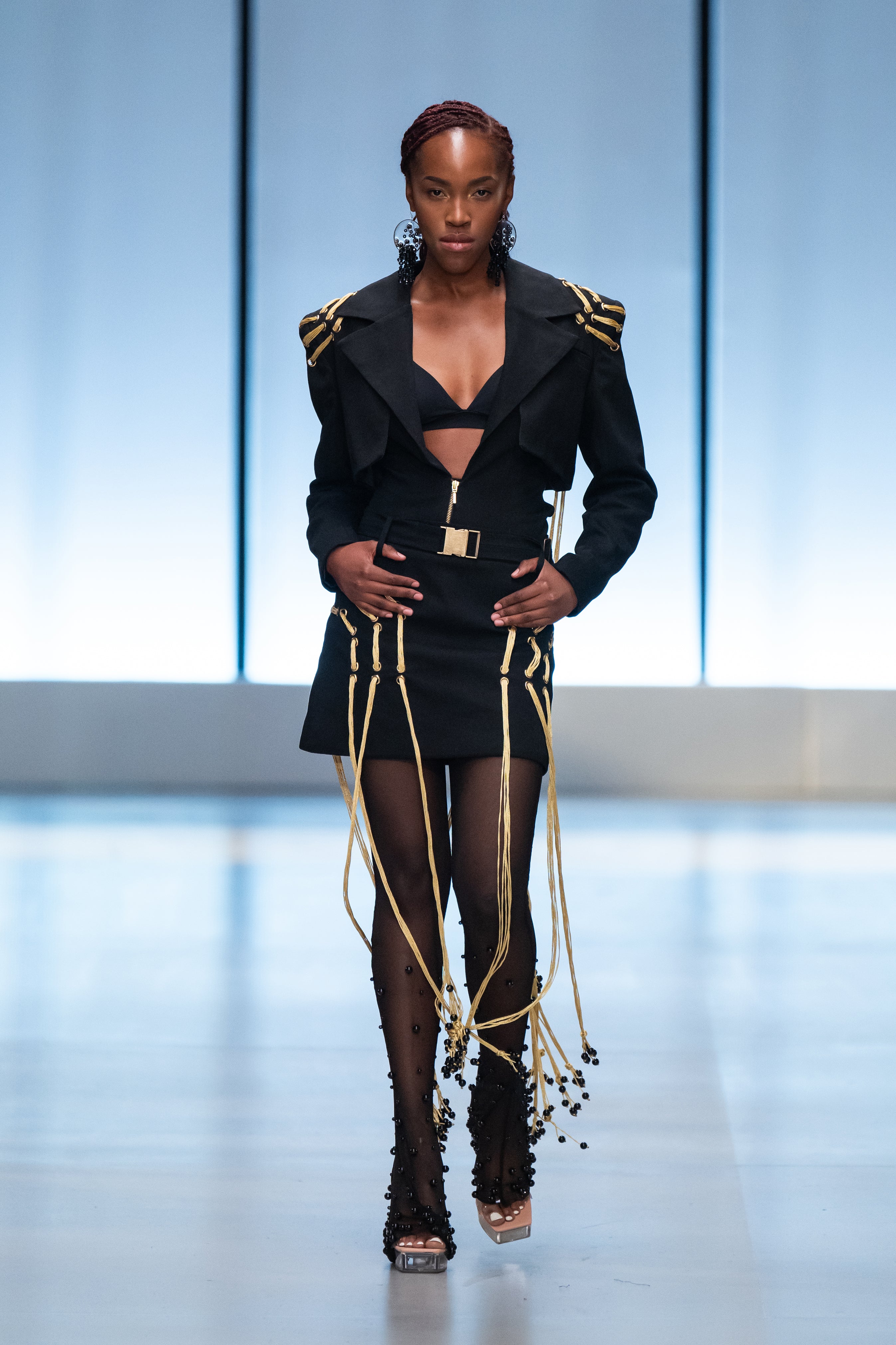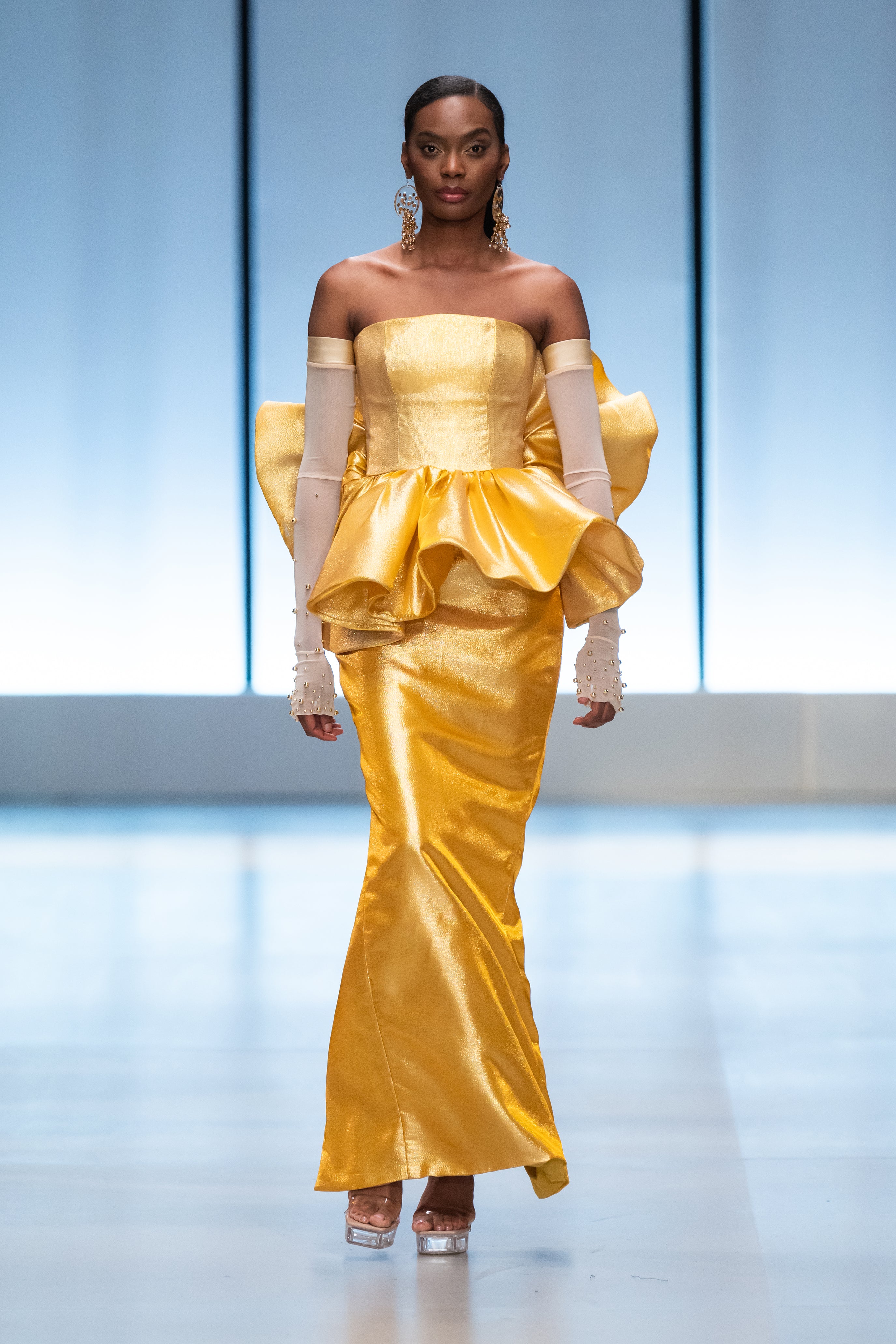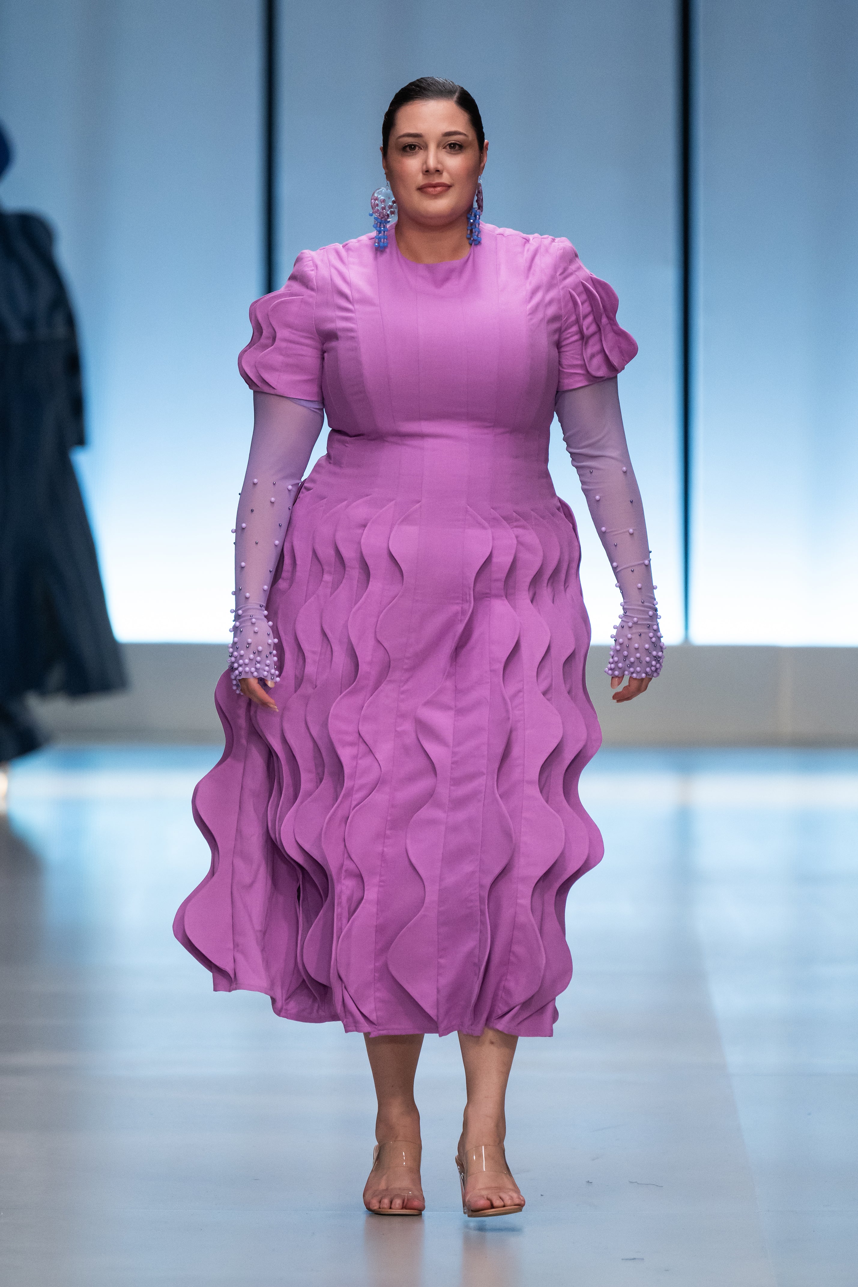 The collection takes its visual signifiers from the growth and development of the natural world around us as a metaphor for our individual evolution and relation to the environment and society surrounding us. It references the formation of natural rock and stone, precious minerals and ores, clouds, foliage, waves and wind to create a range of garments within which everyone can explore their complex and ever-changing individuality alongside a world just as complex in its constant growth and progression.
