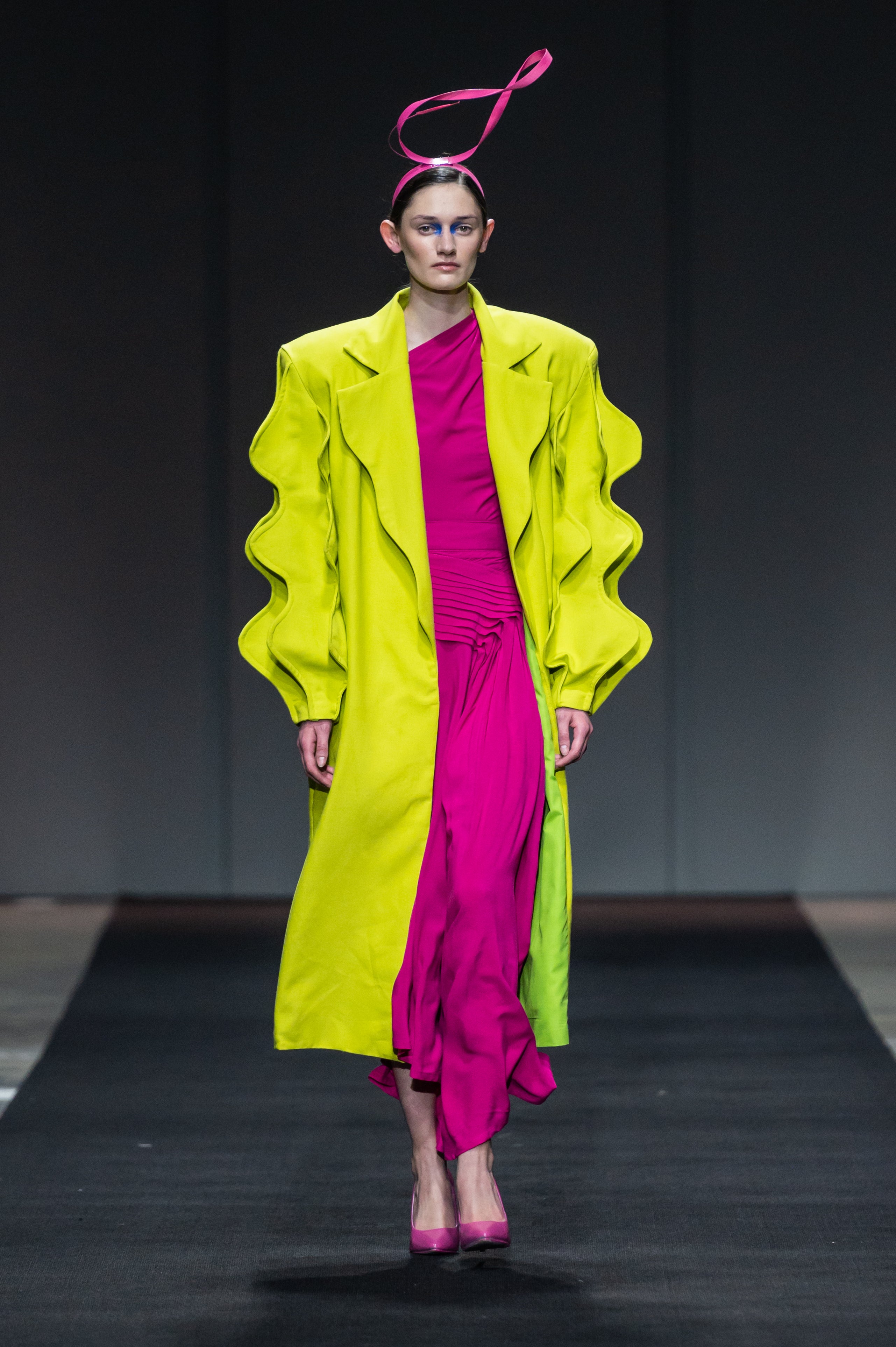 The collection takes inspiration from this stylistic art movement and aims to apply it to the body and clothing. The garments were designed emotionally instead of logically. They explore the impact of colour and silhouette in relation to the body, aiming to re-imagine the natural proportions of the body, accentuating certain parts, while completely ignoring others.