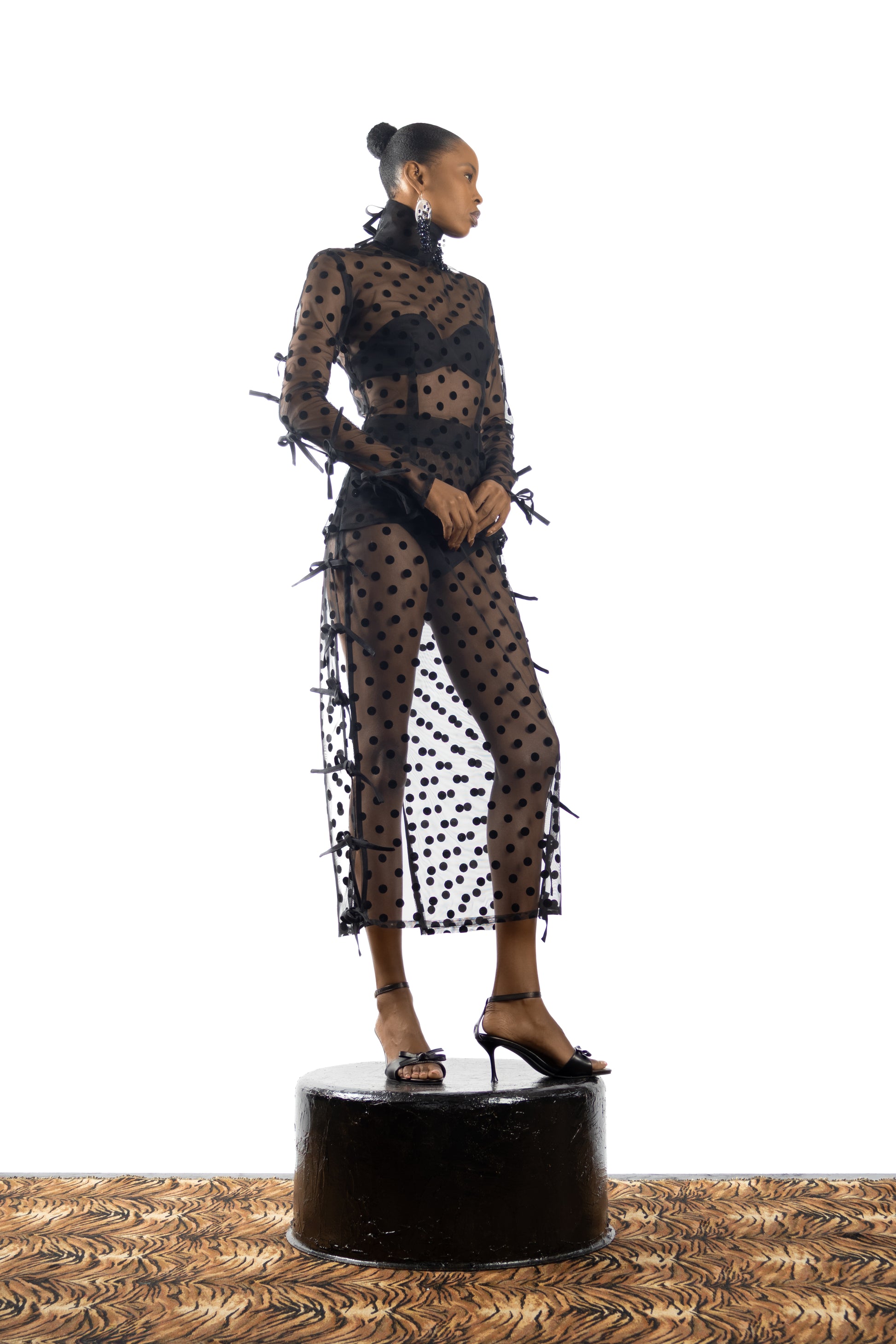 Introducing The Flocked Top: The classic BAM polka dot, reinterpreted in a sheer velvet flocked tulle